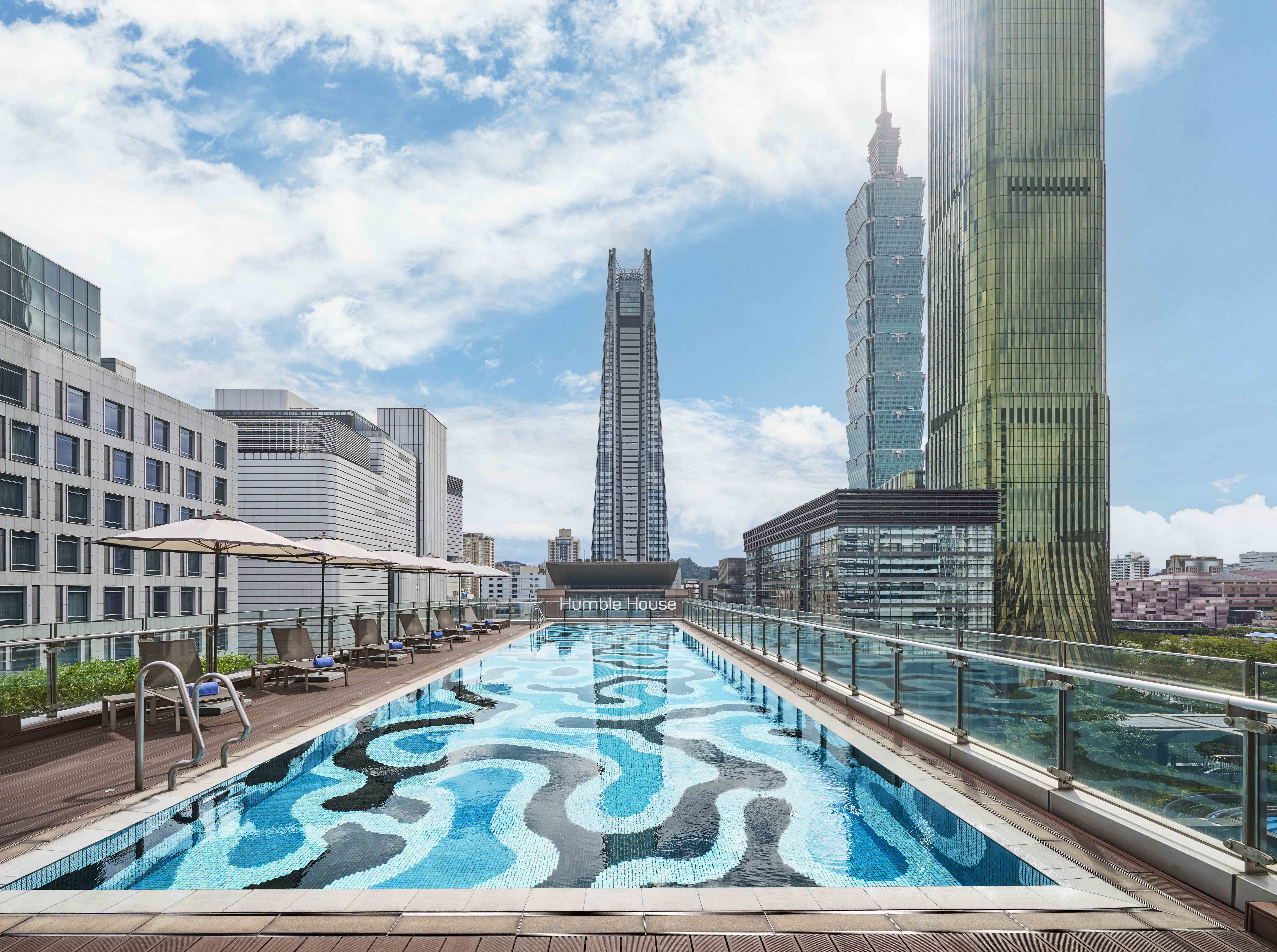 7F屋外にあるプールでは台北101の景観と街の風景をお楽しみいただけます。街の喧騒から逃れ、燦々と降り注ぐ太陽の光をお楽しみいただける最適な場所。屋外エリアに植えられた広がりある緑豊かな植物の景観設計と、ウッドデッキの広がる自然のオアシスの中で快適なリラックスタイムをお過ごしいただけます。